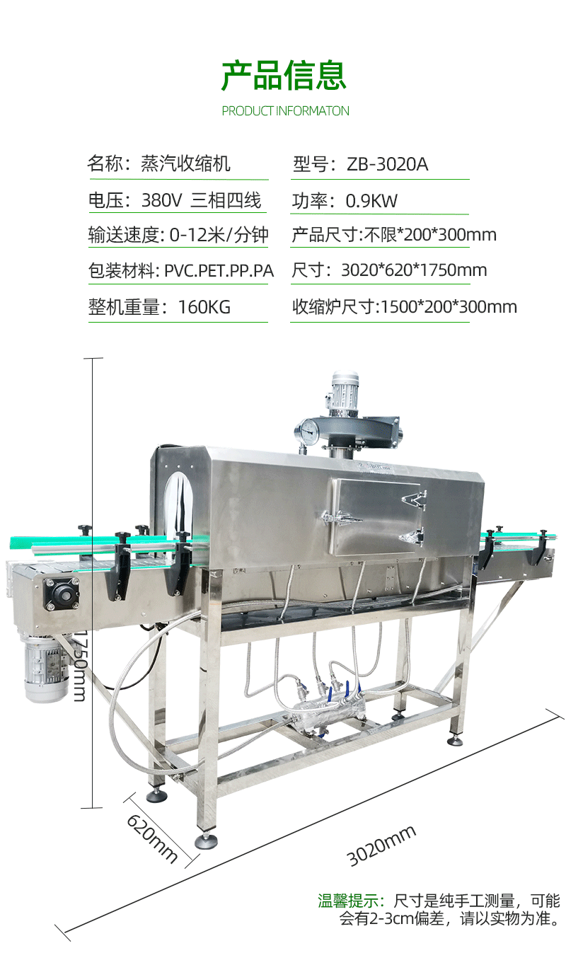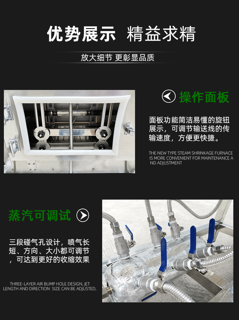 節(jié)能環(huán)保特點:通過精確的蒸汽控制和高效的隔熱措施,機(jī)器在保證良好收縮效果的同時,能夠有效節(jié)約能源。與一些傳統(tǒng)的包裝方式相比,蒸汽收縮包裝減少了包裝材料的浪費(fèi),并且蒸汽可以循環(huán)利用,降低了生產(chǎn)成本和對環(huán)境的影響。