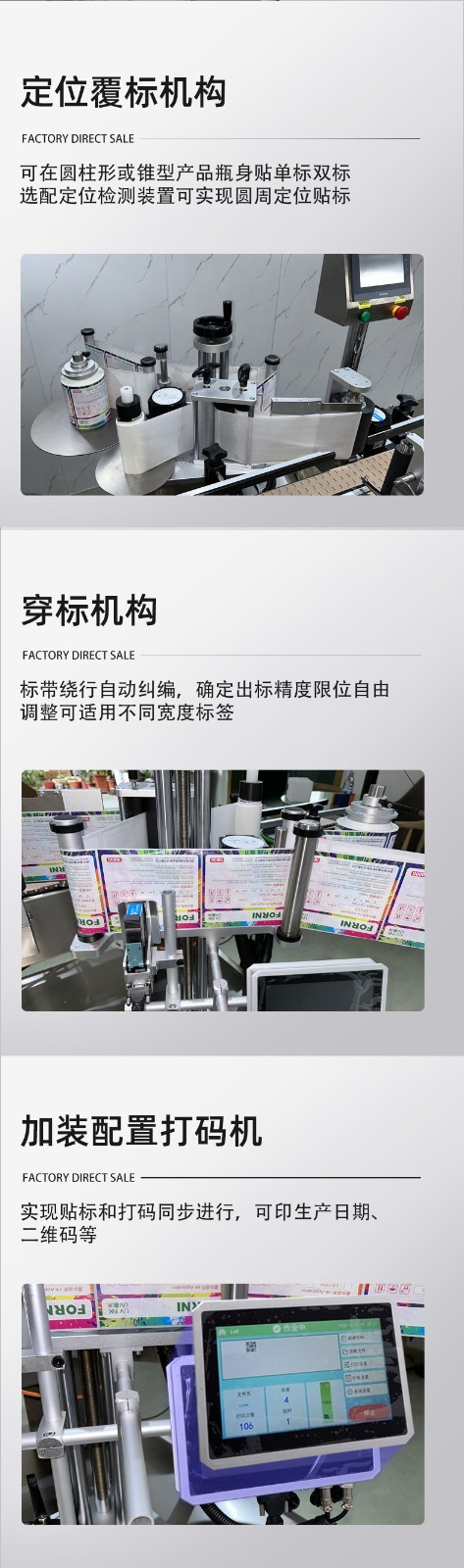 - 定位精準(zhǔn),滿足高標(biāo)準(zhǔn)貼標(biāo)需求依托光電 / 視覺傳感器 + 伺服電機(jī)的組合,貼標(biāo)精度可穩(wěn)定在 ±0.5-1mm,能實(shí)現(xiàn)標(biāo)簽與瓶身圖案對(duì)齊(如 logo 居中、文字正向),尤其適配醫(yī)藥、日化等對(duì)標(biāo)簽位置有嚴(yán)格合規(guī)要求的行業(yè),避免人工貼標(biāo) “歪標(biāo)、斜標(biāo)” 的問(wèn)題。