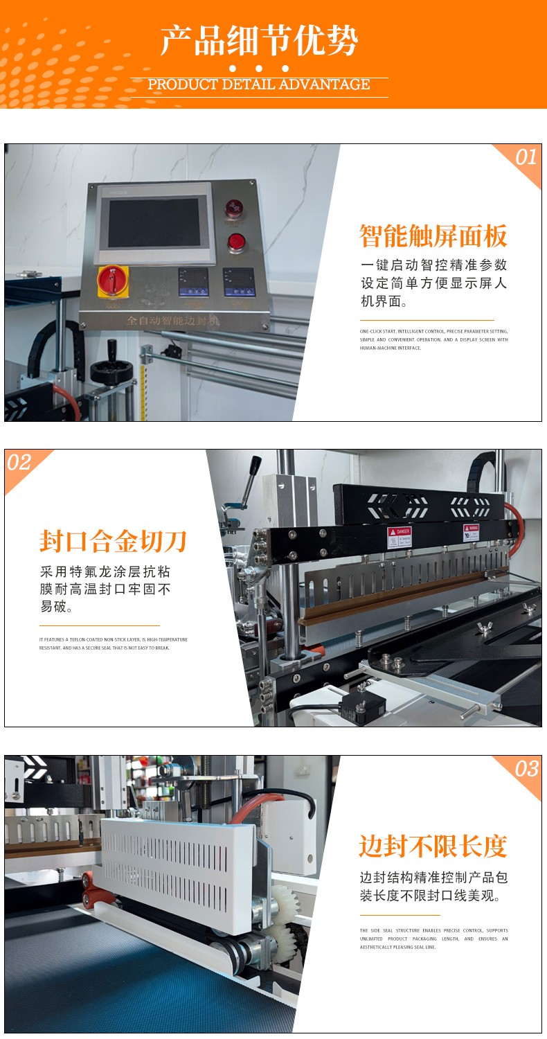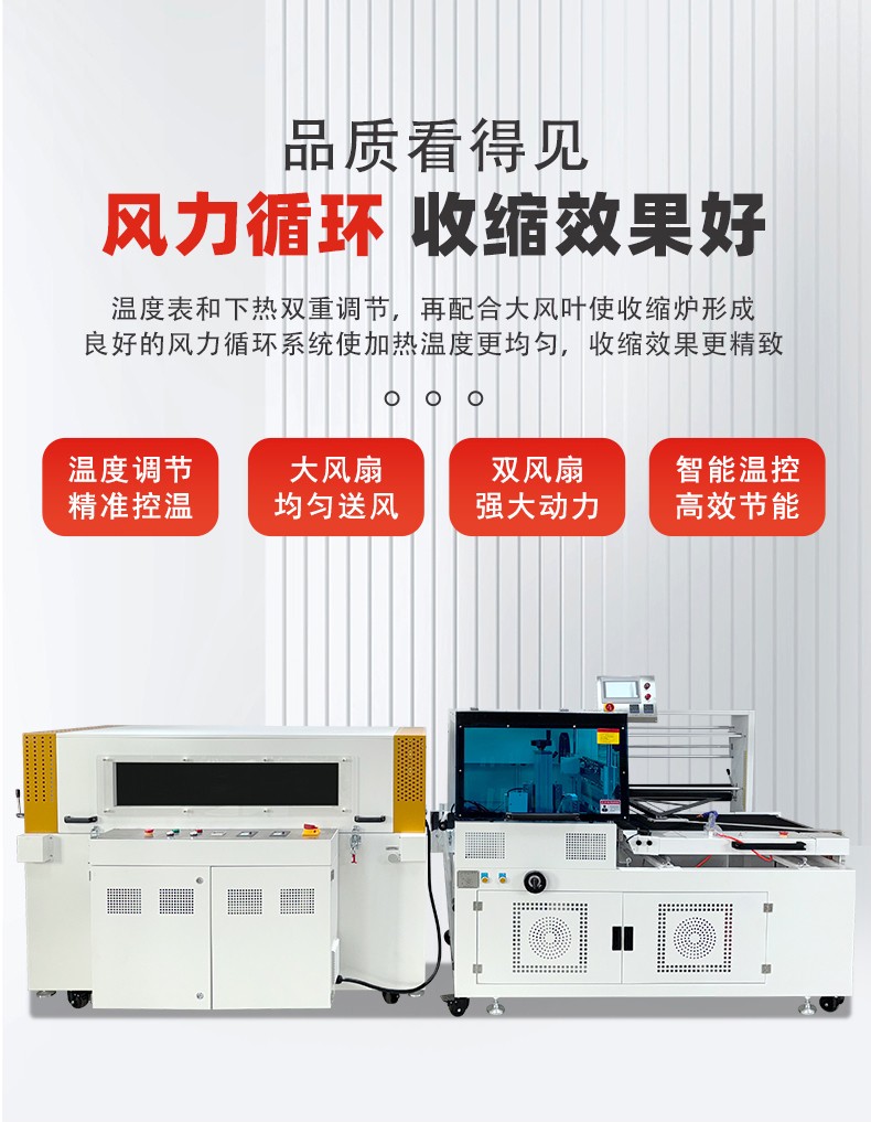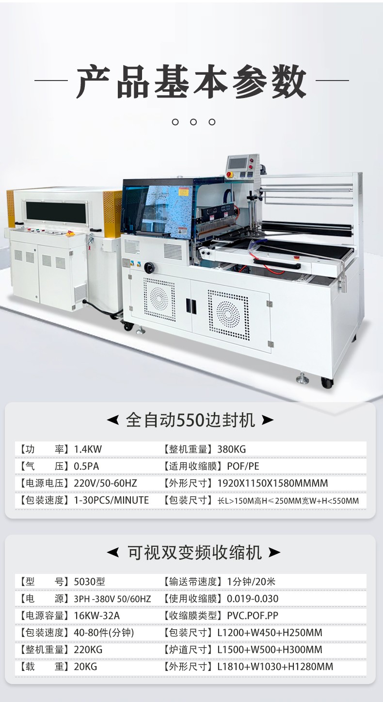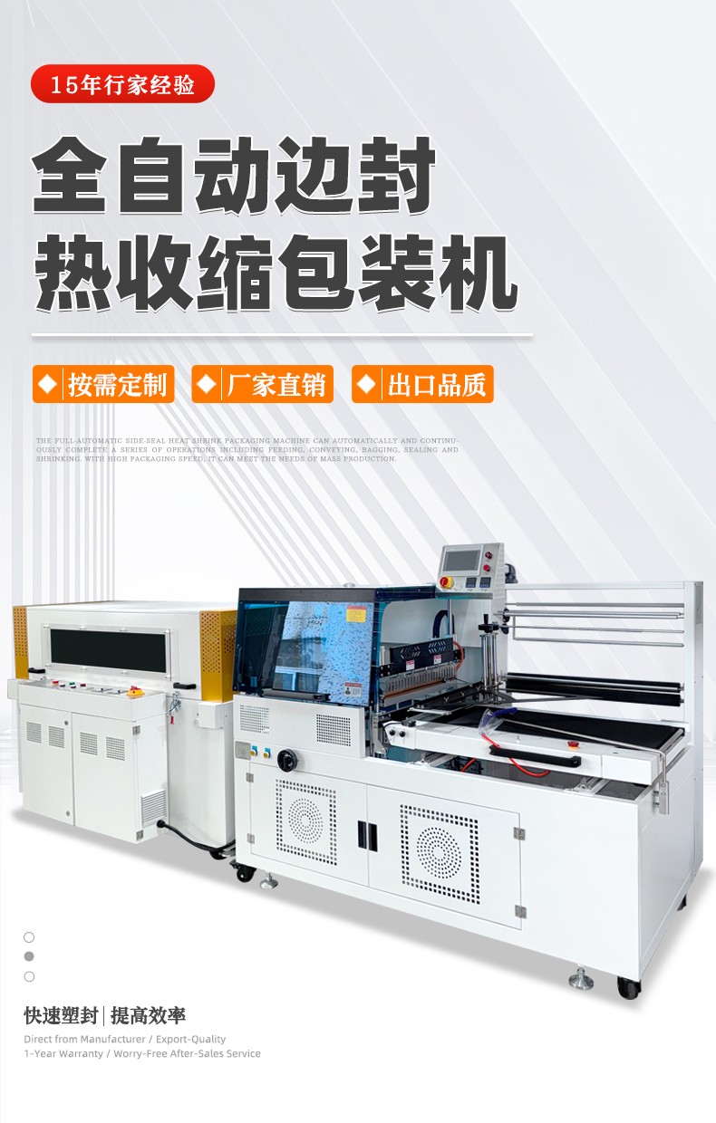 全自動邊封熱收縮包裝機自動化程度高,邊封設計使產品包裝長度無限制