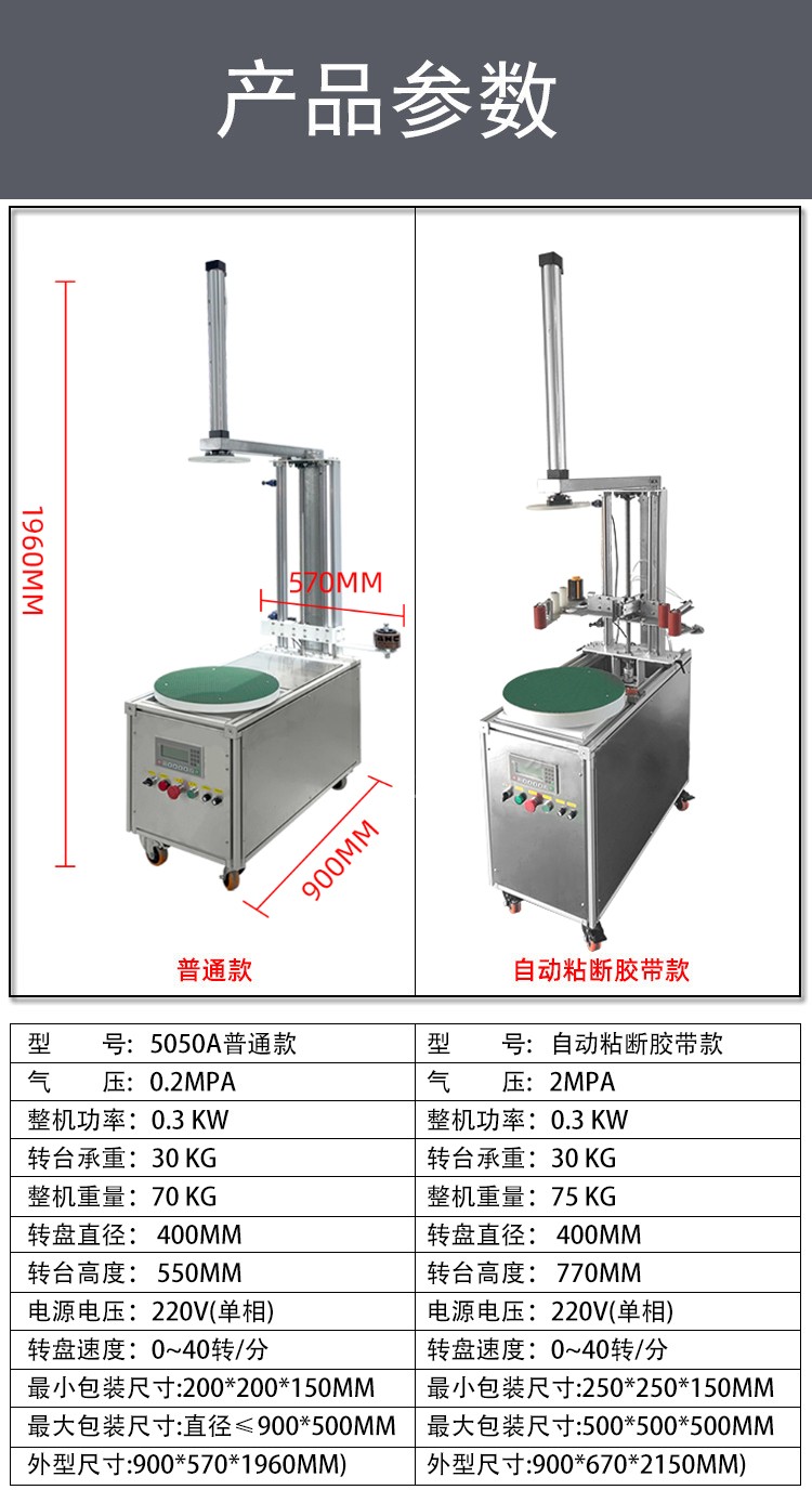 3. 纏繞與人工干預:纏繞過程中,部分機型需要人工輔助旋轉產品,或調整膠帶的纏繞角度;當達到預設的纏繞層數后,機器停止動作。