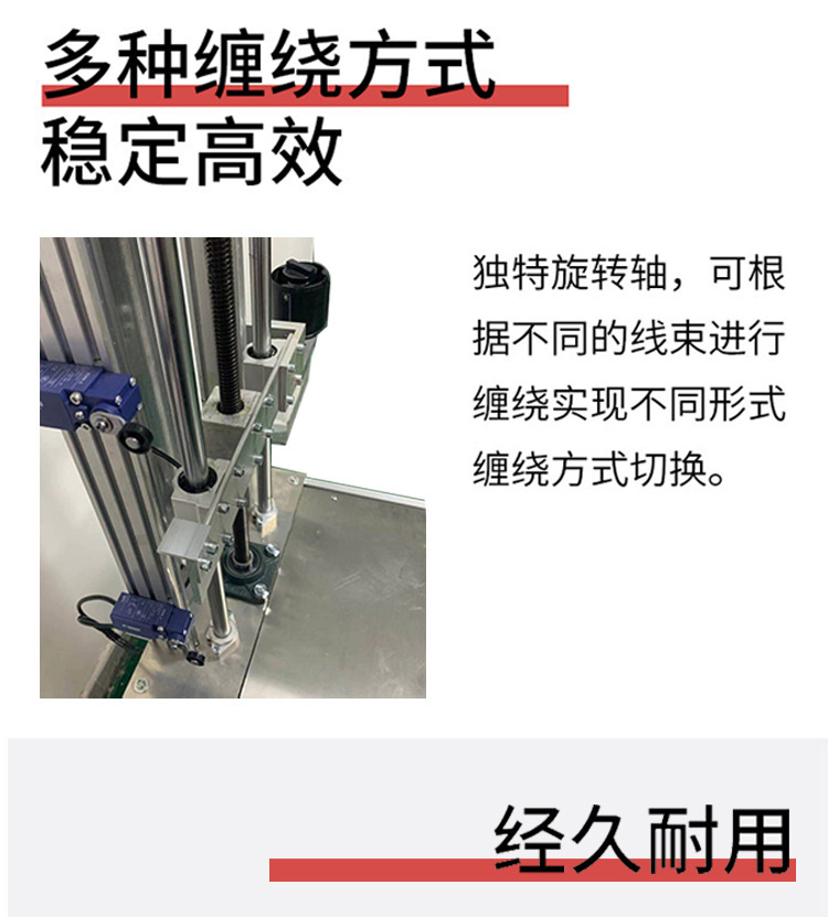 靈活性層面,它無需提前預設大量復雜參數,操作人員僅需簡單培訓,就能快速完成不同尺寸、不同形狀產品的切換作業。通過人工微調定位與纏繞角度,實現高效適配,完美契合多品種、小批量的生產模式。同時,設備機身設計緊湊,無需配套自動化輸送線,即便車間場地狹窄,也能靈活擺放,甚至可搭配腳輪實現移動作業,進一步拓展應用場景。