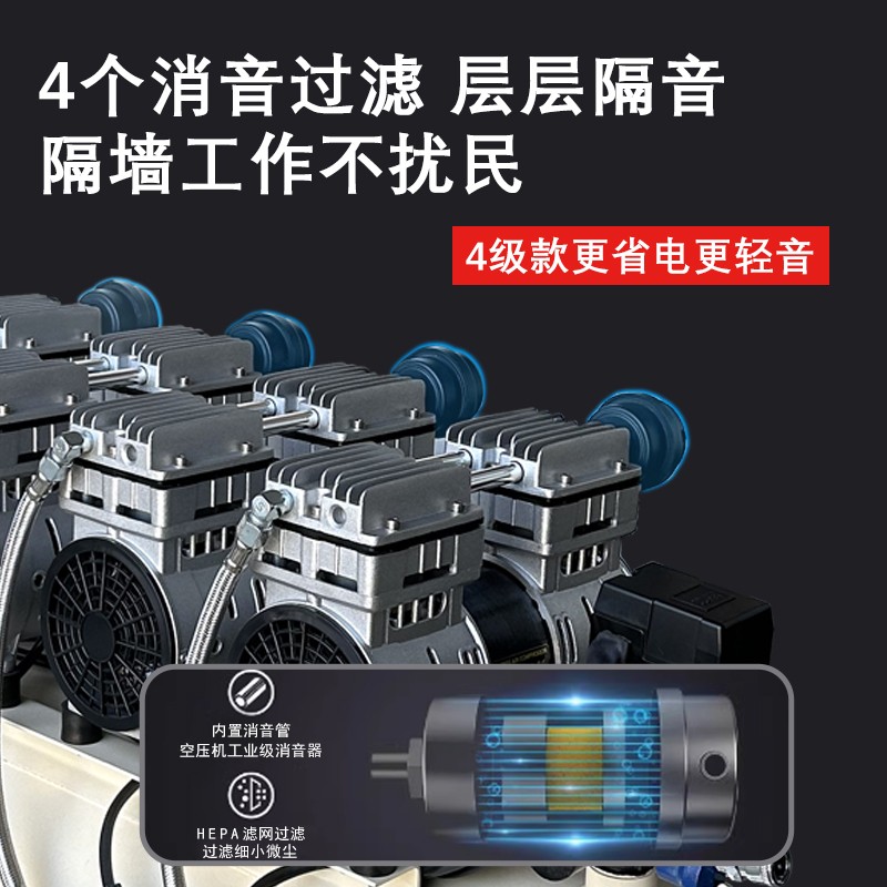 - 壓縮過程:活塞向上運動,氣缸容積減小,空氣被壓縮,壓力升高。由于采用特殊的活塞環和氣缸材料,如聚四氟乙烯等自潤滑材料,活塞與氣缸之間形成良好的密封和潤滑,無需潤滑油,就能保證壓縮過程的順利進行。
